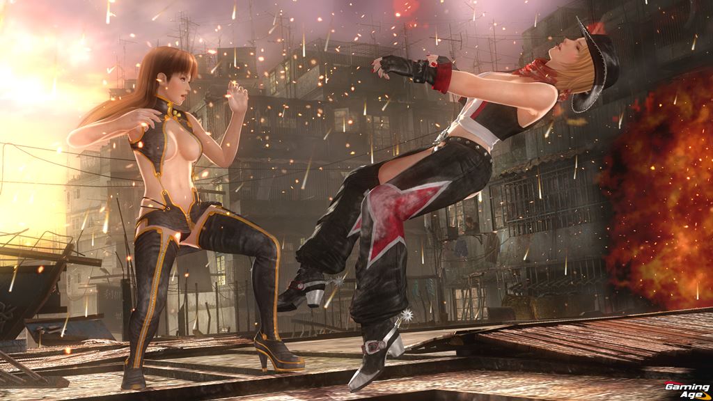 Team NINJA pulls back the curtain even further, divulging more new content players can expect in DEAD OR ALIVE 5 Last Round. Dynamic fighting stages are a hallmark of the DEAD OR ALIVE series, and they are taken to the next level in Last Round. A fan favorite stage from DEAD OR ALIVE 2 makes its glorious next gen debut in The Crimson. A multi-level stage set in a bustling urban street in Asia, players start out on sprawls of tin rooftops where victory and defeat teeter on a razor thin edge. Combatants are one good punch away from being thrown through the surrounding fence, treated to one of several all-new over-the-top Cliffhanger events, and ultimately smashing through to the lower level, a dimly lit street tinged only with the light of surrounding neon signs. In new next-gen screenshots released today, characters Kokoro, Brad, Leifang and Tina can be seen traversing and utilizing Danger Zones across both levels of The Crimson, while sporting brand new costumes and even customized hairstyles.
