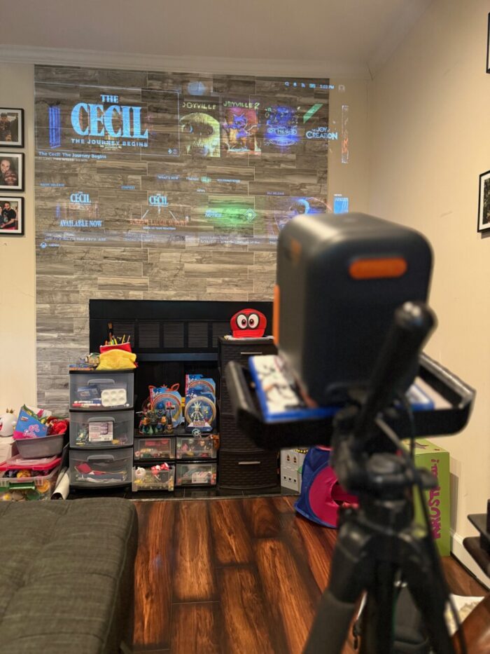 My time with Episode One was mostly in my living room and you can see some of the set ups I did in my unboxing video here. This model is budget friendly and as of this article $199.99. It has a native 1080p resolution which includes Dolby audio with a 1500:1 Contrast Ratio. You can use any projector screen but also use your walls, which was my point of focus.