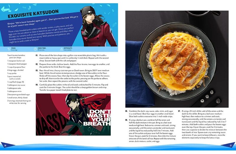 Here’s a “hot take”, cookbooks based on pop culture properties are strange…why would I want to imbibe food where quality of life is low. I don’t think Pandoran cuisine would be palatable and wouldn’t cuisine in the Halo universe just consist of military rations? However, given the setting of ATLUS’ Persona games is somewhat parallel to ours and I’m a big weeb, I wouldn’t mind dining on what the S.E.E.S, Investigation Team and the Phantom Thieves would be dining on.