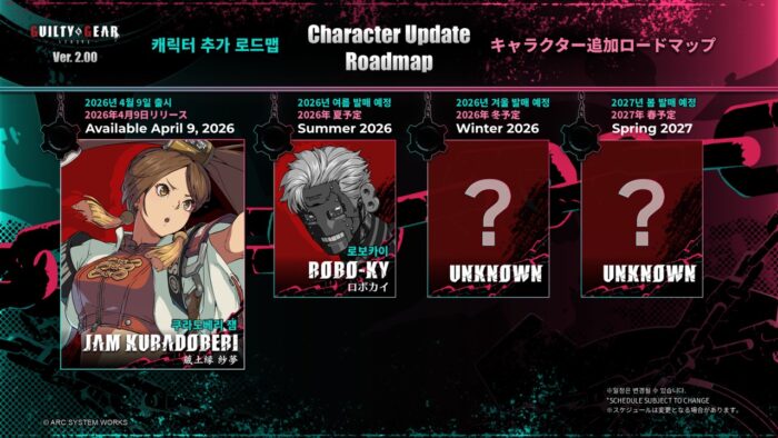Throughout the course of the weekend we also saw plenty of announcements which included the release date of the next major update for Guilty Gear -STRIVE-. The much bandied about Version 2.0 which promises gameplay changes, new moves and rebalancing will be released in a little over 2 weeks on April 9th 2026. This date will also kick off the game’s 5th Season pass which will see the return of Jam Kuradoberi to the roster. We also got full renders of the 2nd character of the season, Robo-Ky looking stylish as hell with his new body.