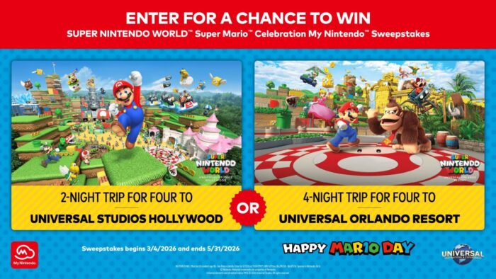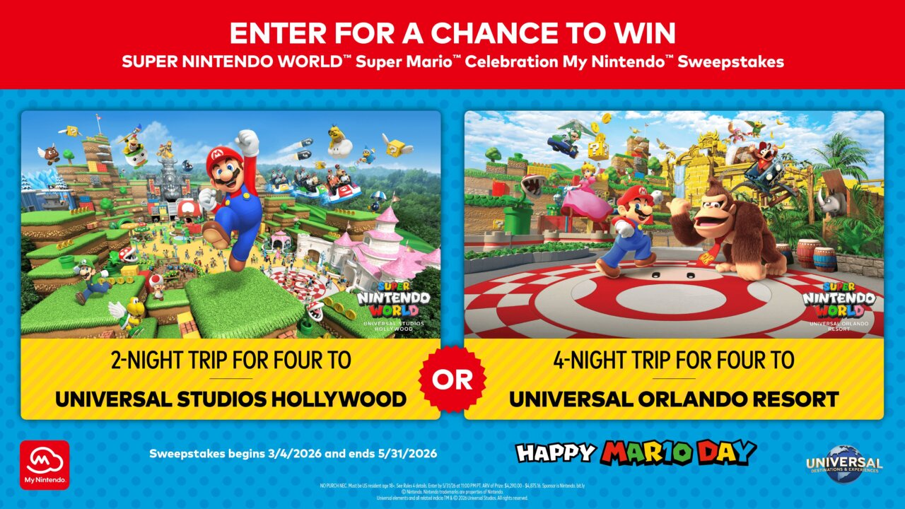 Perhaps youāll spend some of those platinum points to test your luck in the SUPER NINTENDO WORLD™ Super Mario™ Celebration My Nintendo™ Sweepstakes. You can spend your platinum points to earn up to 5 entries for a trip to either Universal Studios Hollywood or Universal Orlando Resort. Experience the Mushroom Kingdom in person and enjoy rides based on the Super Mario and Donkey Kong franchises (Orlando only).